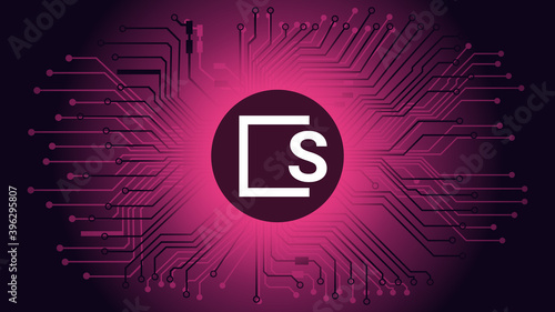 Wall mural : Skale skl cryptocurrency token symbol - coin icon in circle with pcb on red background - vector illust
