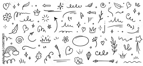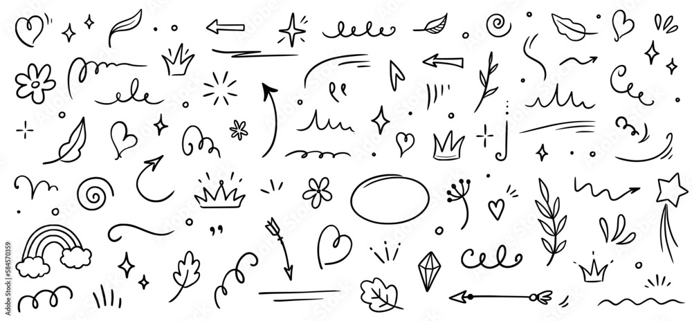 The watermark will not be included on Wall mural.: Sketch element line set - abstract nature element decoration graphic icon set - sketch hand drawn line