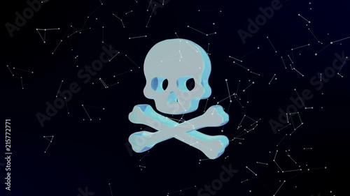 Wall mural : Skull being formed by revolving particles - futuristic structure of plexus lines and points, dark blu
