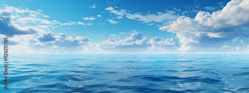 Wall mural : Sky over calm sea - blue sea and sunny sky on horizon over calm water