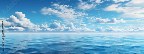 Wall mural : Sky over calm sea - blue sea and sunny sky on horizon over calm water
