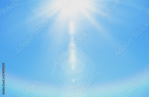 Wall mural sky with sunbeams light flare white fluffy cloudscape nature background retro color style - Wall murals Wall mural sky with sunbeams light flare white fluffy cloudscape nature background retro color style - Wall murals