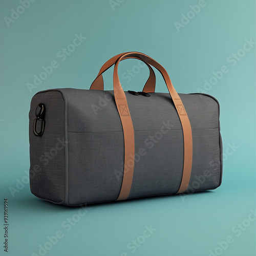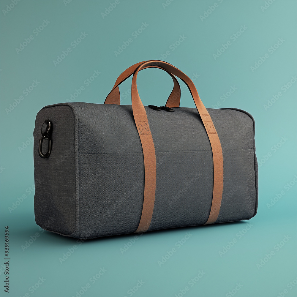 Wall mural : Slate overnight bag mockup with sharp imaging on a cyan background
