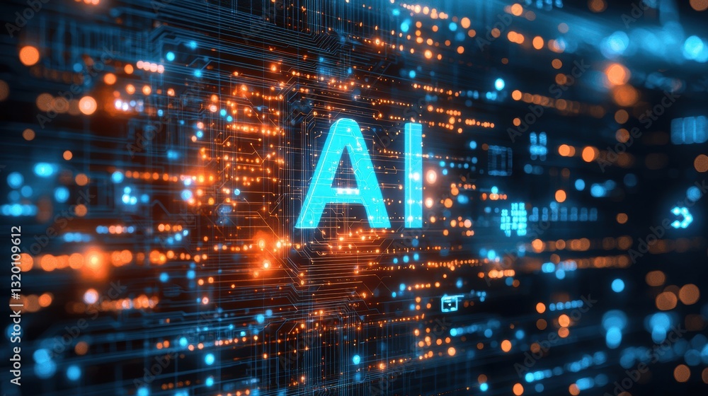 Wall mural : Sleek and visually appealing banner featuring ai with glowing elements and a modern technology aesth