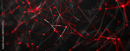 Wall mural : Sleek black backdrop with red digital threads weaving a complex web, illustrating advanced communica