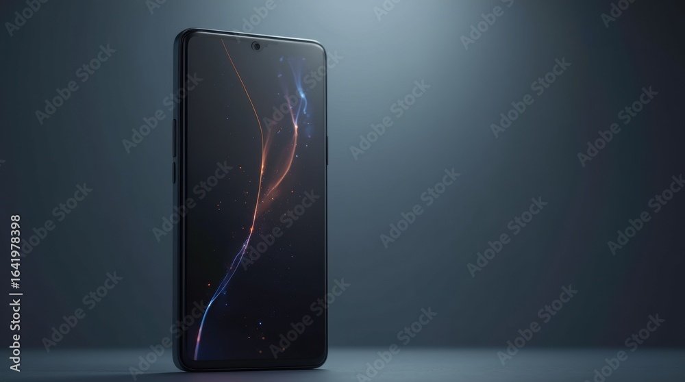 The watermark will not be included on Wall mural.: Sleek black smartphone with glowing interface on clean gradient background for mobile technology pro