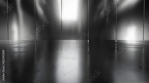 The watermark will not be included on Wall mural.: Sleek metallic silver backdrop for high tech electronics product presentation
