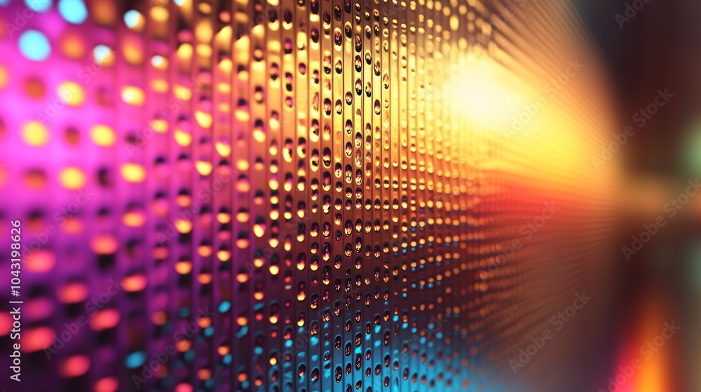 Wall mural sleek metallic surface with holographic patterns and soft reflections, creating a futuristic tech vi - Wall murals Wall mural sleek metallic surface with holographic patterns and soft reflections, creating a futuristic tech vi - Wall murals