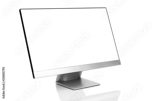 Wall mural : Sleek modern computer display with blank white screen, front side view titled up and isolated on whi