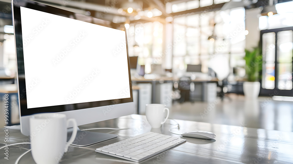 Wall mural : Sleek modern office with an led computer screen mockup displaying a transparent png image for a prof