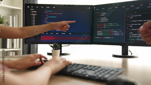 Wall mural : Slow motion back end software developer engineer for computer programming working together on debugg
