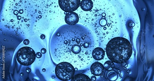 Wall mural slow motion macro of floating micro particles molecules in liquid are analyzed with microscope by ch