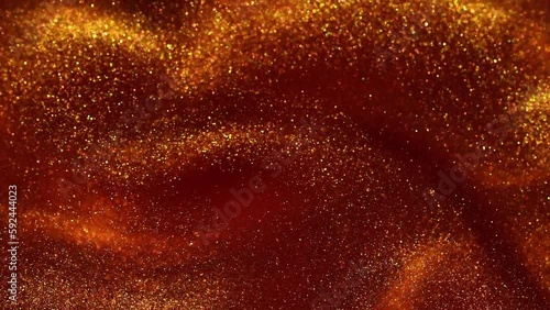 Slow motion of gold particles in red fluid - gold dust particles floating and dispersing in red fluidWall mural