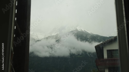 The watermark will not be included on Wall mural.: Slow-moving time-lapse of soft clouds seen through a window - ideal for meditation, stillness, or int