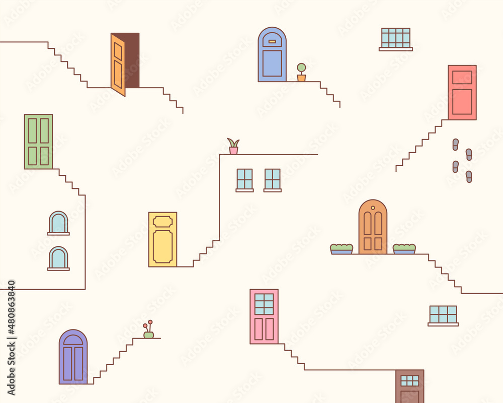 Wall mural small and simple doors are on the lined staircase. simple pattern design template. - Wall murals Wall mural small and simple doors are on the lined staircase. simple pattern design template. - Wall murals