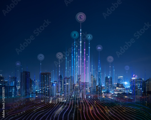 Wall mural : Smart city and abstract dot point connect with gradient line