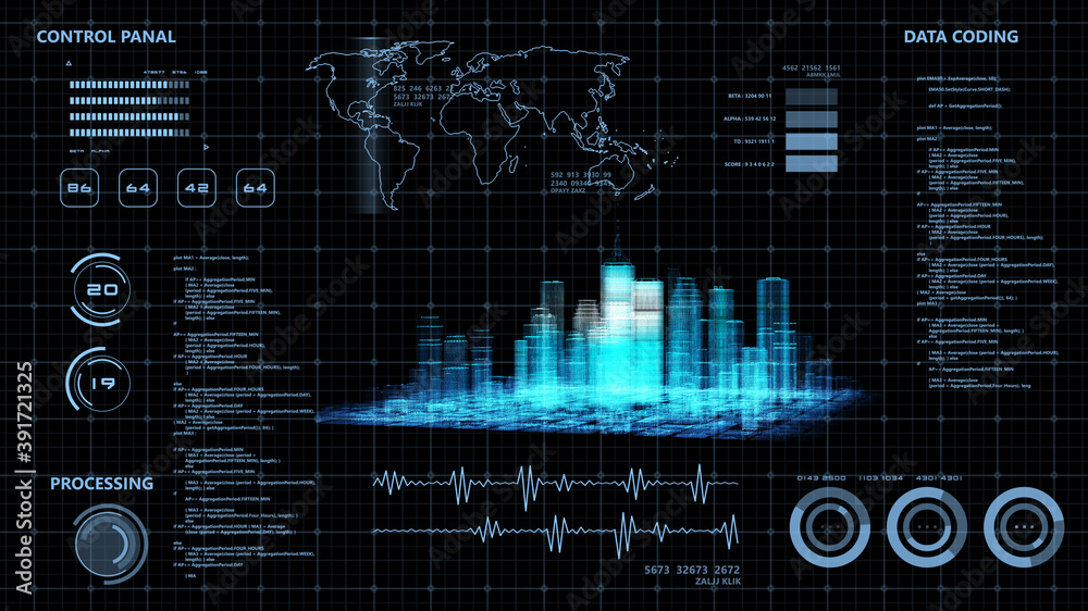 Wall mural smart city technology digital smart world 3d architecture building hologram scan ui monitor screen h - Wall murals Wall mural smart city technology digital smart world 3d architecture building hologram scan ui monitor screen h - Wall murals