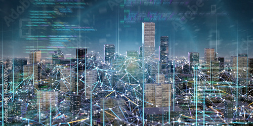 Wall mural smart city with network and communication connection - 3d rendering - Wall murals Wall mural smart city with network and communication connection - 3d rendering - Wall murals