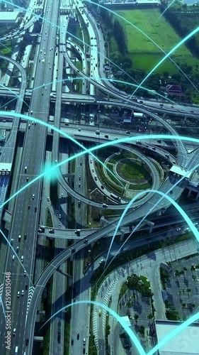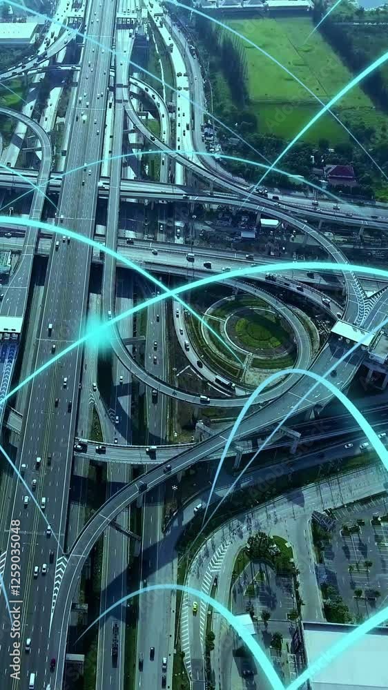 Wall mural smart digital city highway with globalization graphic of connection network abstract line . concept