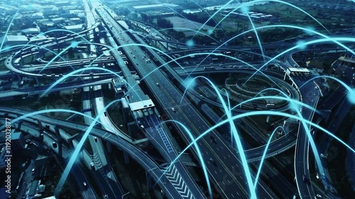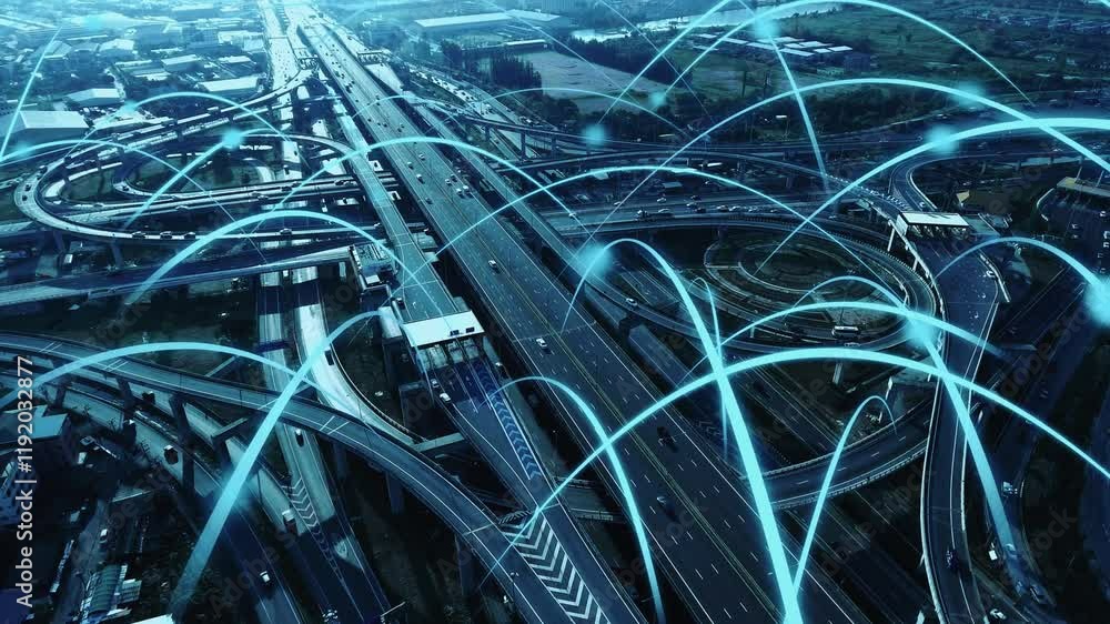 Wall mural smart digital city highway with globalization graphic of connection network abstract line . concept  - Wall murals Wall mural smart digital city highway with globalization graphic of connection network abstract line . concept - Wall murals