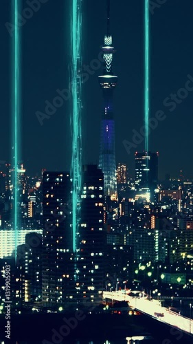The watermark will not be included on Wall mural.: Smart digital city with globalization abstract graphic showing connection network - concept of futur