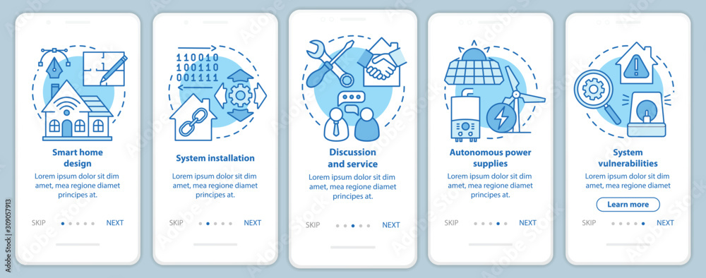 Wall mural : Smart home onboarding mobile app page screen vector template - home automation system design and serv