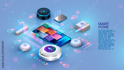 The watermark will not be included on Wall mural.: Smart home system customization control on phone - design iot smart home system - creation scenarios o