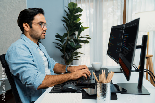 Wall mural smart it developer working software development coding with creating application program update vers - Wall murals Wall mural smart it developer working software development coding with creating application program update vers - Wall murals