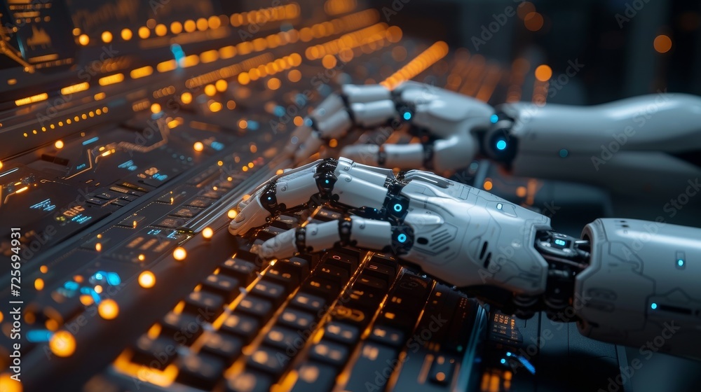 Wall mural smart robot ai technology is used to assist and support work for chatbots, chat ai, generating image - Wall murals Wall mural smart robot ai technology is used to assist and support work for chatbots, chat ai, generating image - Wall murals
