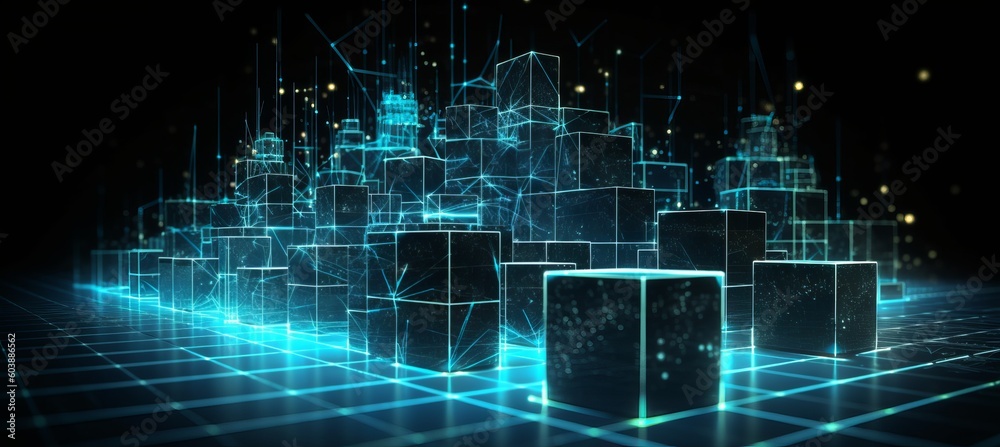 Wall mural smart square blockchain global data network system structure technology background. generative ai te - Wall murals Wall mural smart square blockchain global data network system structure technology background. generative ai te - Wall murals