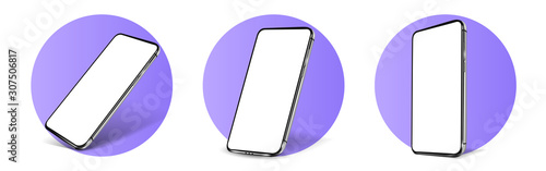 Wall mural smartphone frameless blank screen mockup template perspective view.realistic smartphone mockup. mobi