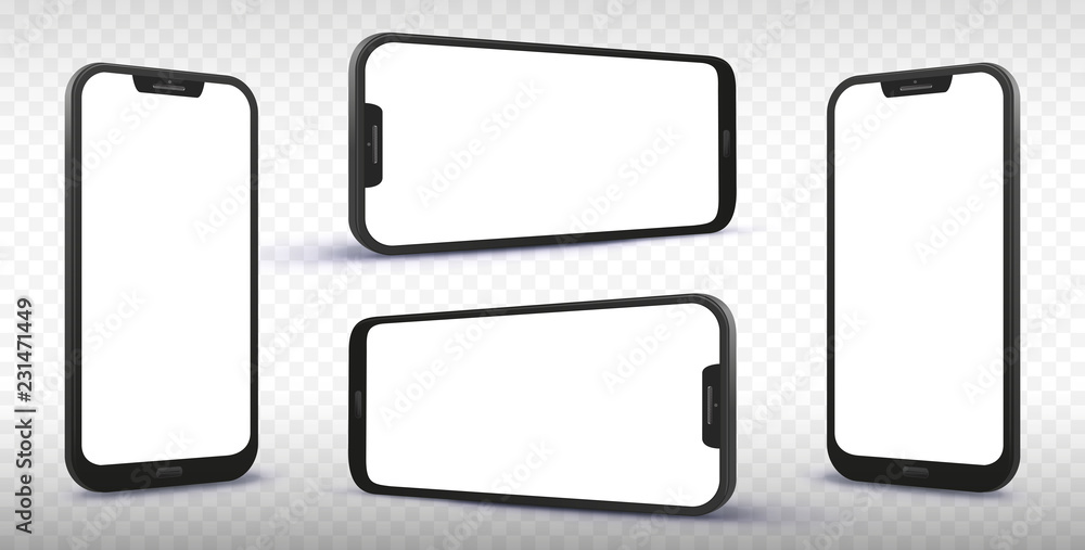 The watermark will not be included on Wall mural.: Smartphone from different angles and perspectives with transparent background