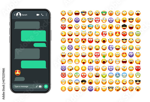 Wall mural smartphone messaging app, user interface with emoji. sms text frame. chat screen, green message bubb - Wall murals Wall mural smartphone messaging app, user interface with emoji. sms text frame. chat screen, green message bubb - Wall murals
