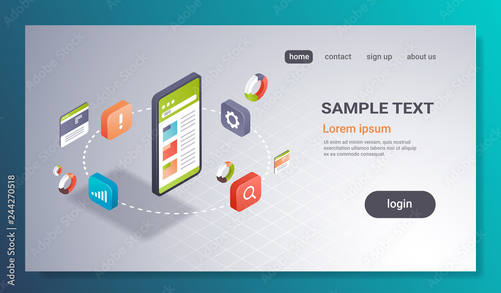 The watermark will not be included on Wall mural.: Smartphone screen internet search engine optimization application seo concept online mobile app inte