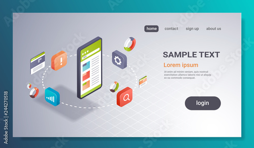 Wall mural smartphone screen internet search engine optimization application seo concept online mobile app inte