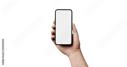 Wall mural smartphone with a blank screen in hand, app template - rotate the camera around the object and start