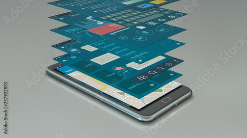 The watermark will not be included on Wall mural.: Smartphone with a set of mobile app templates (3d render)
