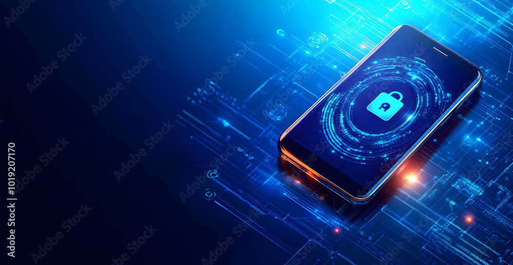 Wall mural smartphone with creative connected digital business interface with various icons and binary code on  - Wall murals Wall mural smartphone with creative connected digital business interface with various icons and binary code on - Wall murals