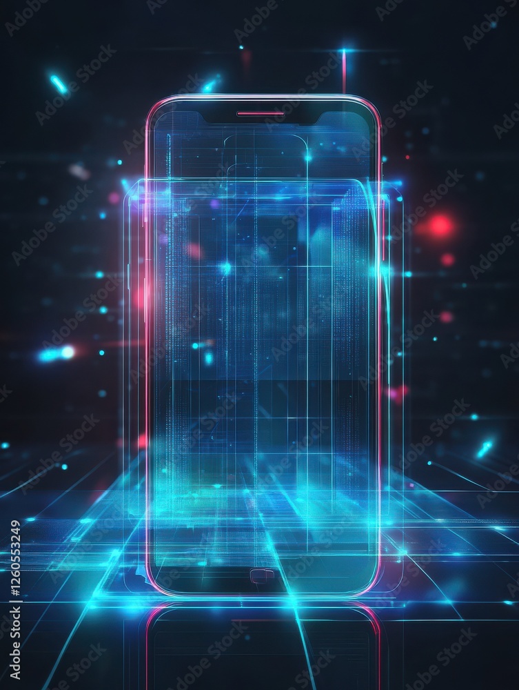 The watermark will not be included on Wall mural.: Smartphone with digital screen hologram - composition smart object and smart technology design - graph