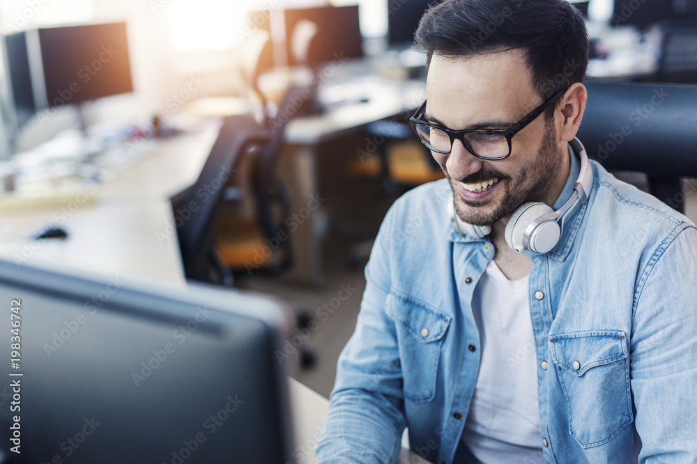 The watermark will not be included on Wall mural.: Smiling programmer