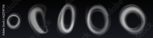 Wall mural : Smoke ring cloud vector steam round cloud effect - abstract transparent hookah shape isolated on back