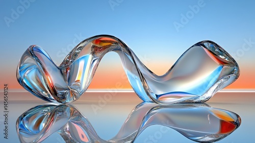 Smooth abstract ribbon in translucent glass with reflective surface belowWall mural