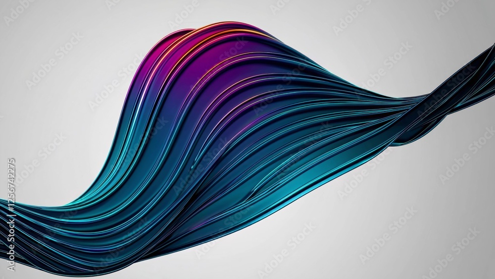 Wall mural smooth elegant metallic blue and purple gradient swirling and flowing on white background, creating  - Wall murals Wall mural smooth elegant metallic blue and purple gradient swirling and flowing on white background, creating - Wall murals
