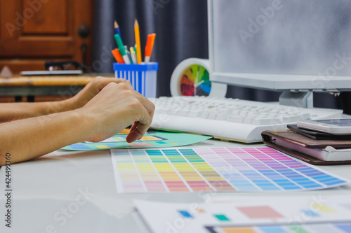 The watermark will not be included on Wall mural.: Smooth focus,a team of ui ux web designers are working together to develop a mobile responsive websi