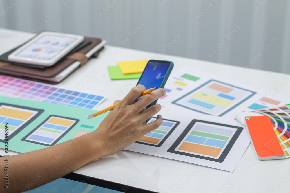 Wall mural smooth focus,a team of ui ux web designers are working together to develop a mobile responsive websi - Wall murals Wall mural smooth focus,a team of ui ux web designers are working together to develop a mobile responsive websi - Wall murals