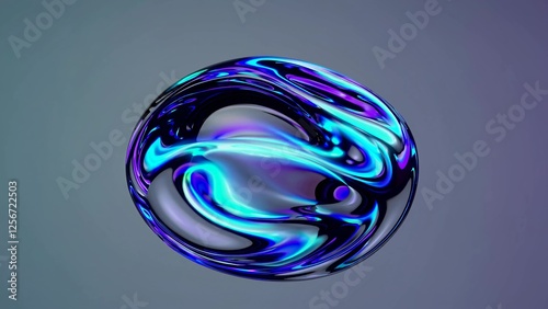 The watermark will not be included on Wall mural.: Smooth metallic sphere with purple and turquoise reflections creating a mesmerizing abstract visual