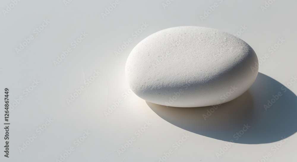 The watermark will not be included on Wall mural.: Smooth white pebble on light surface with soft shadows and minimalistic aesthetic copy space