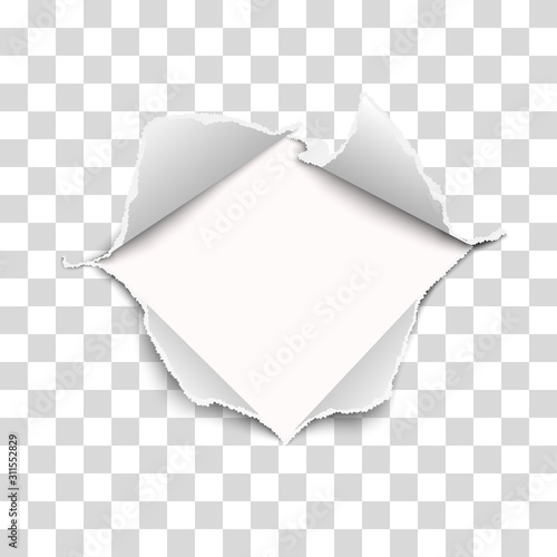 Wall mural snatched middle of vector transparent paper with torn edges, soft shadow and empty space. damaged sh - Wall murals Wall mural snatched middle of vector transparent paper with torn edges, soft shadow and empty space. damaged sh - Wall murals