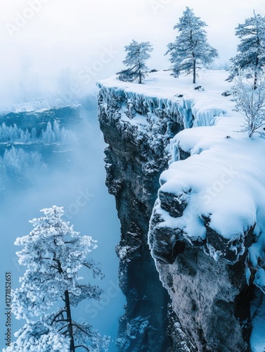 Snow-covered cliff with treeWall mural
