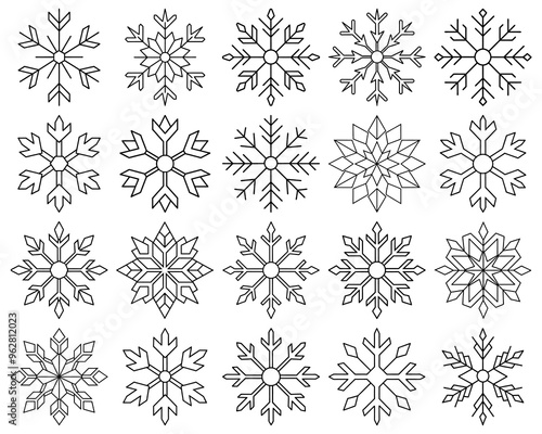 The watermark will not be included on Wall mural.: Snowflake icon - set of linear snowflake icons - christmas decor - black drawn snowflake - snowflakes te